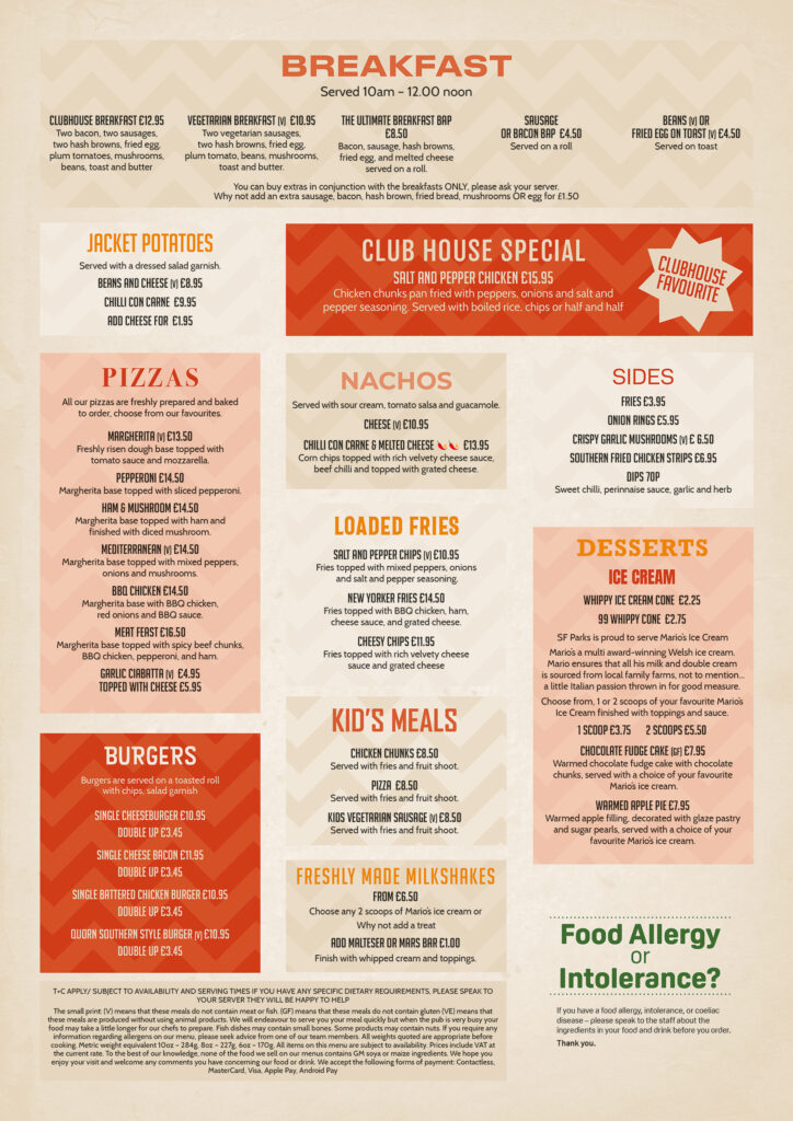 The Clubhouse Menu
